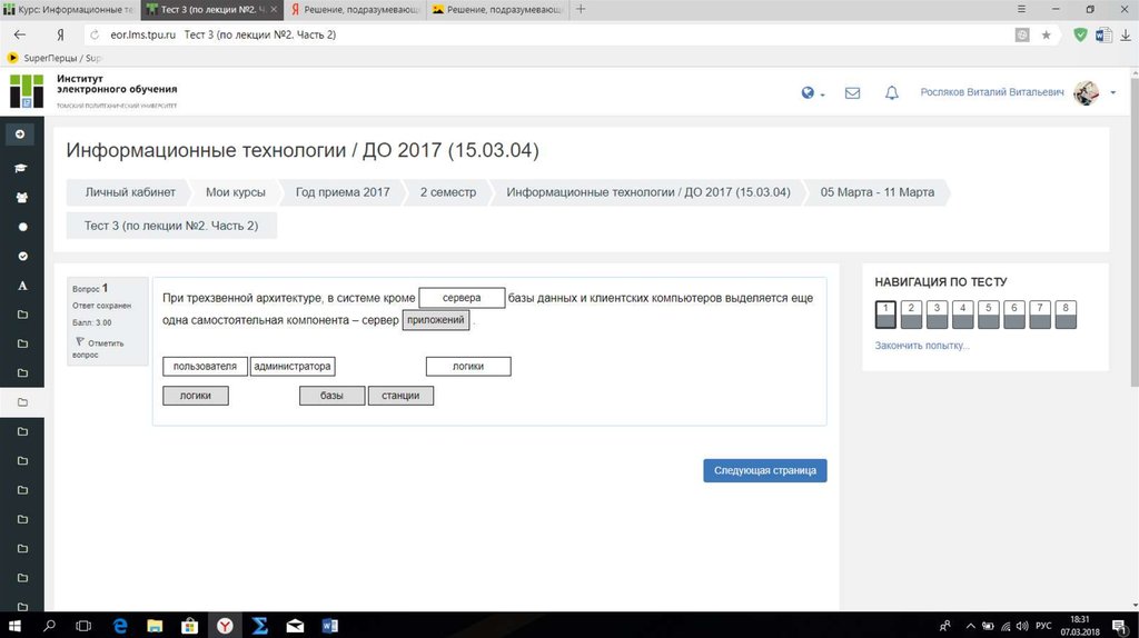 Результат теста № 3Баллы: