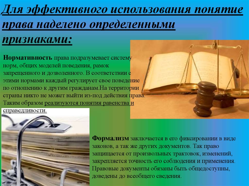 Для эффективного использования понятиеправа наделено определенными