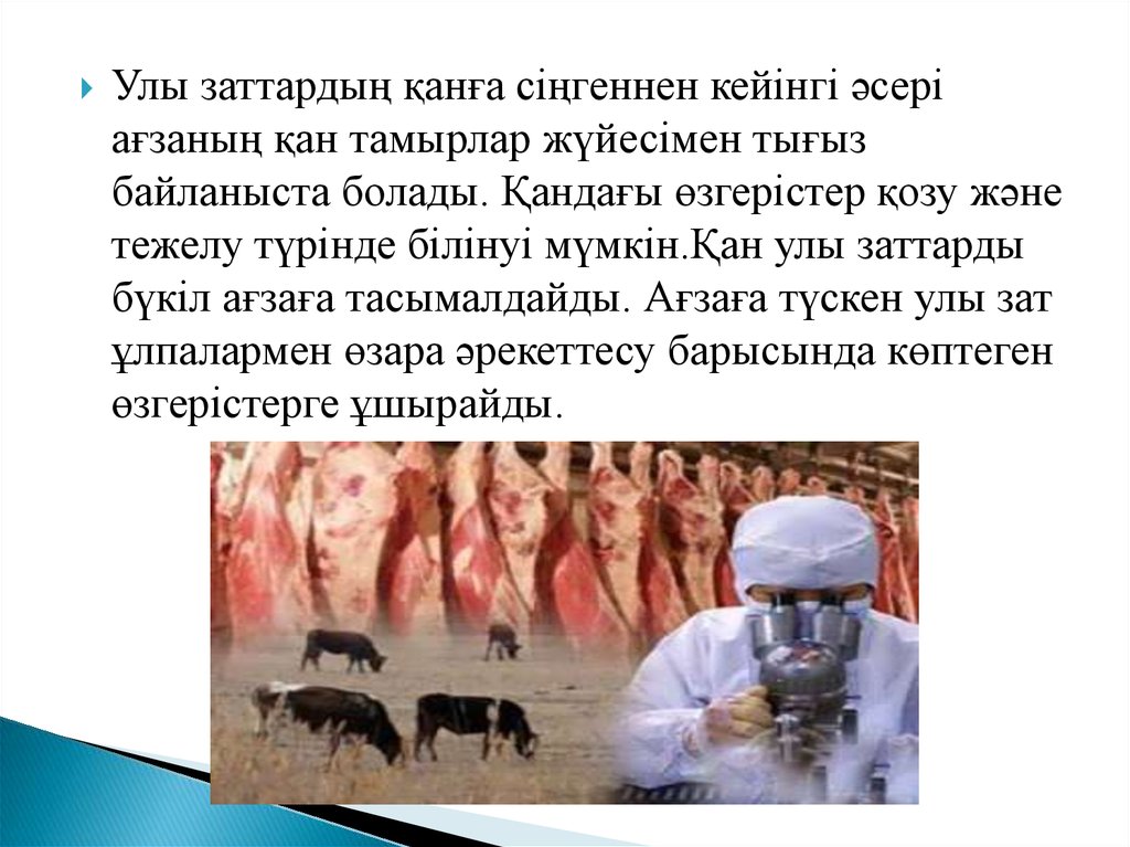 Улы заттардың қанға сіңгеннен кейінгі әсеріағзаның қан тамырлар жүйесімен тығыз
