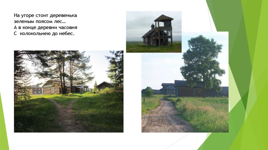 На угоре стоит деревеньказеленым поясом лес…