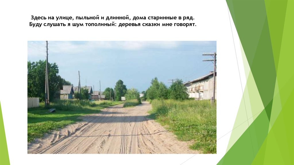 Здесь на улице, пыльной и длинной, дома старинные в ряд.Буду слушать я шум тополиный: деревья сказки мне говорят.