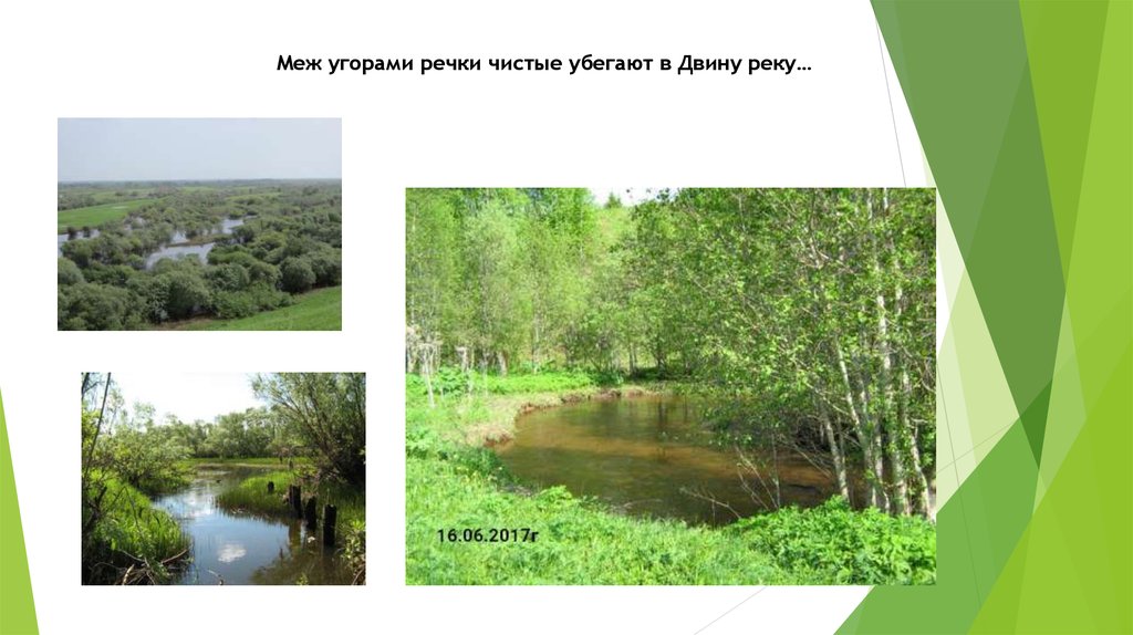 Меж угорами речки чистые убегают в Двину реку…8.