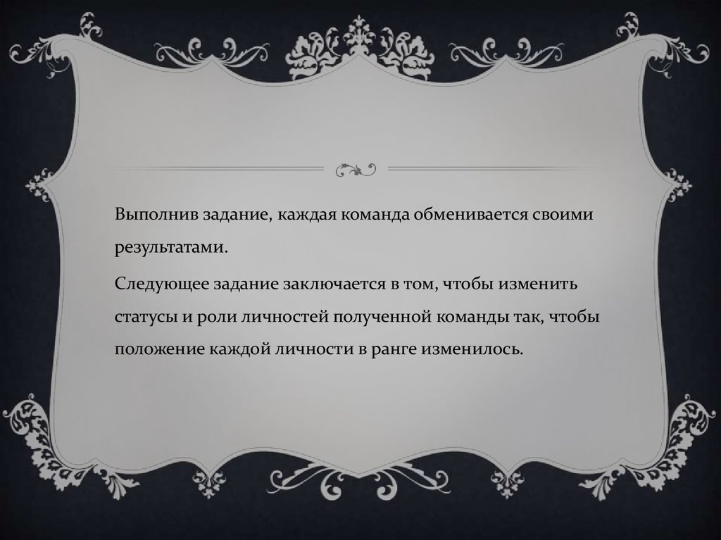 Выполнив задание, каждая команда обменивается своимирезультатами.