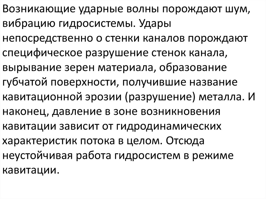 Возникающие ударные волны порождают шум,вибрацию гидросистемы. Удары
