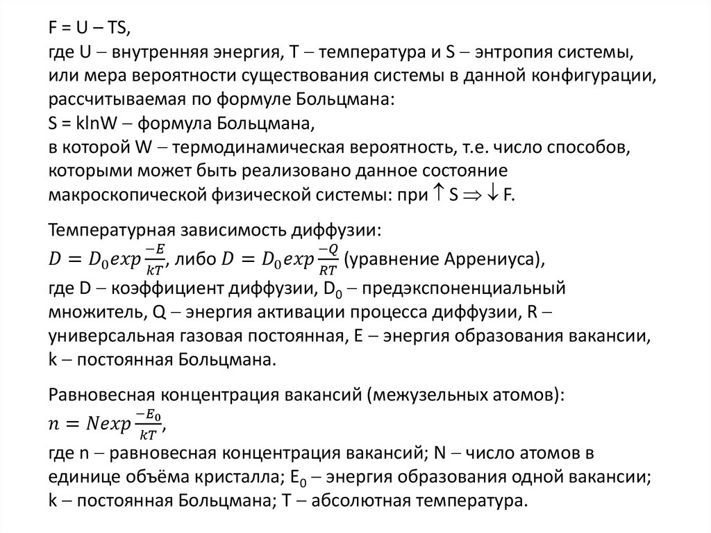 F = U – TS,где U внутренняя энергия, Т температура и S энтропия системы,