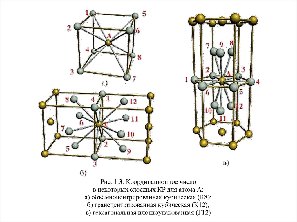 Рис. 1.3. Координационное числов некоторых сложных КР для атома А: