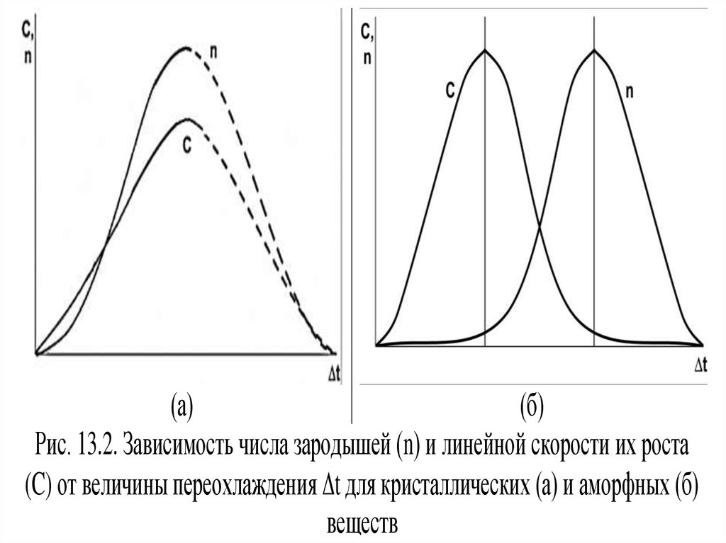 Рис. 1.1. Схема строения аморфных (а) и кристаллических (б) веществ