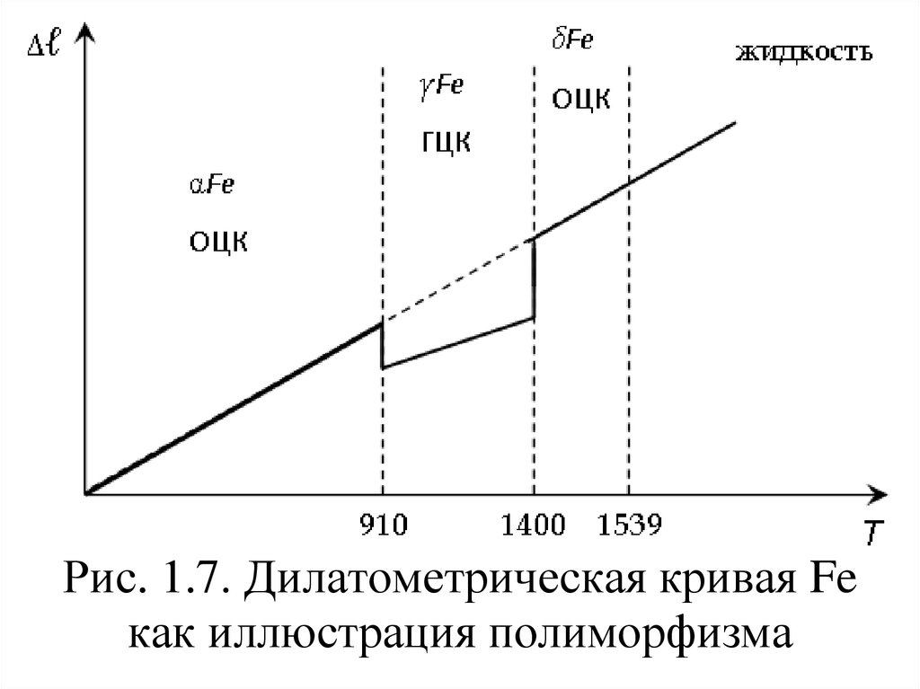 Рис. 1.7. Дилатометрическая кривая Feкак иллюстрация полиморфизма