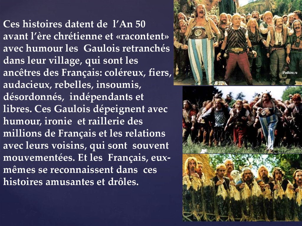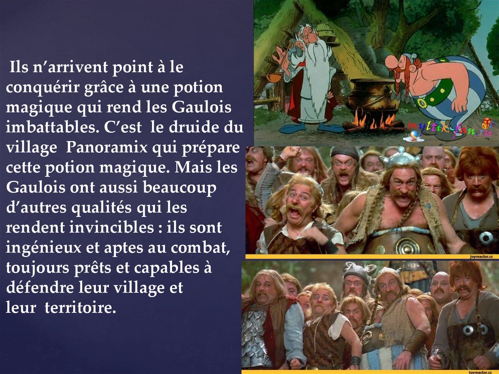 Ils viennent d’un village gaulois (imaginaire).Celui-ci est le seul qui fasse face aux