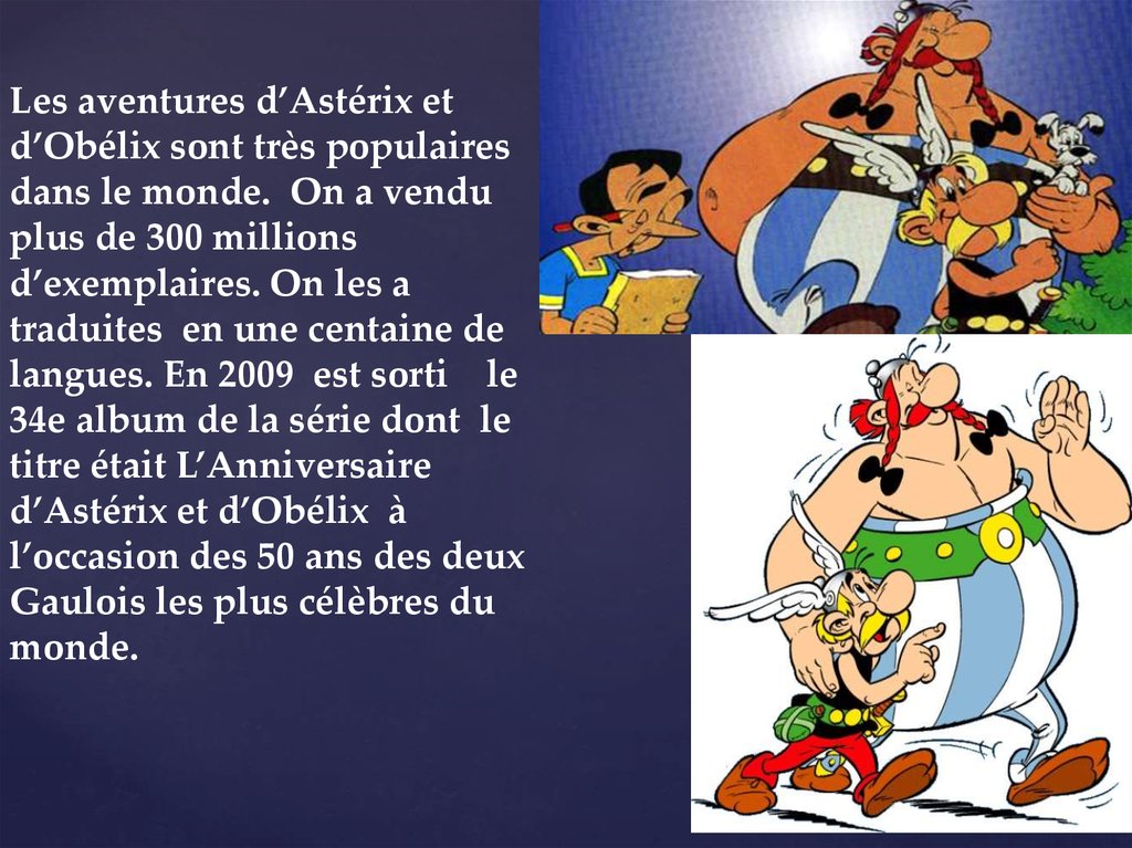 Les aventures d’Astérix etd’Obélix sont très populaires