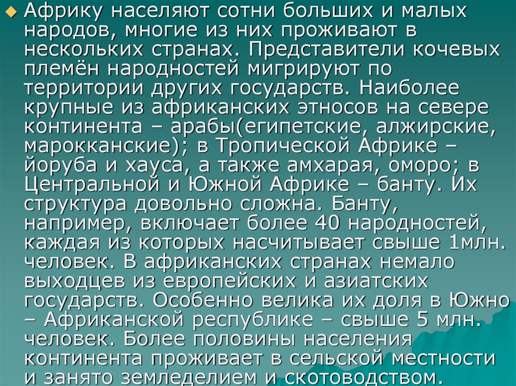 Африку населяют сотни больших и малыхнародов, многие из них проживают в