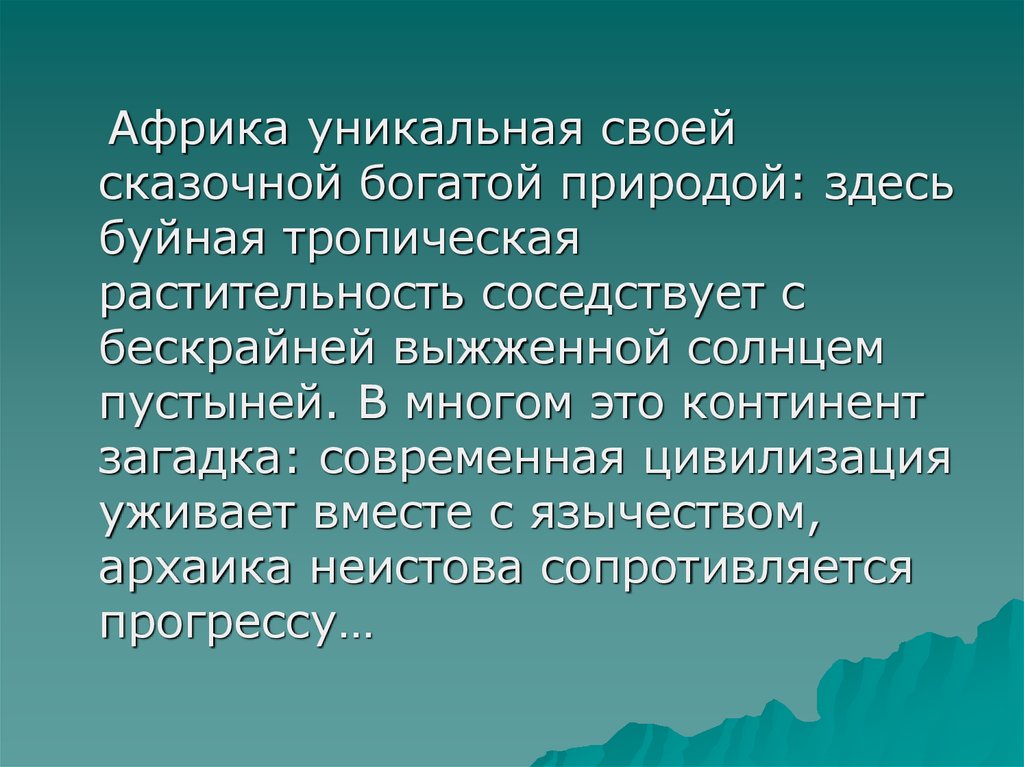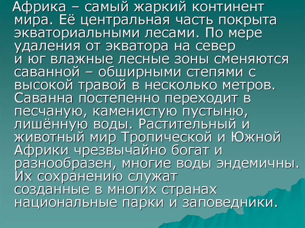 Африка – самый жаркий континентмира. Её центральная часть покрыта