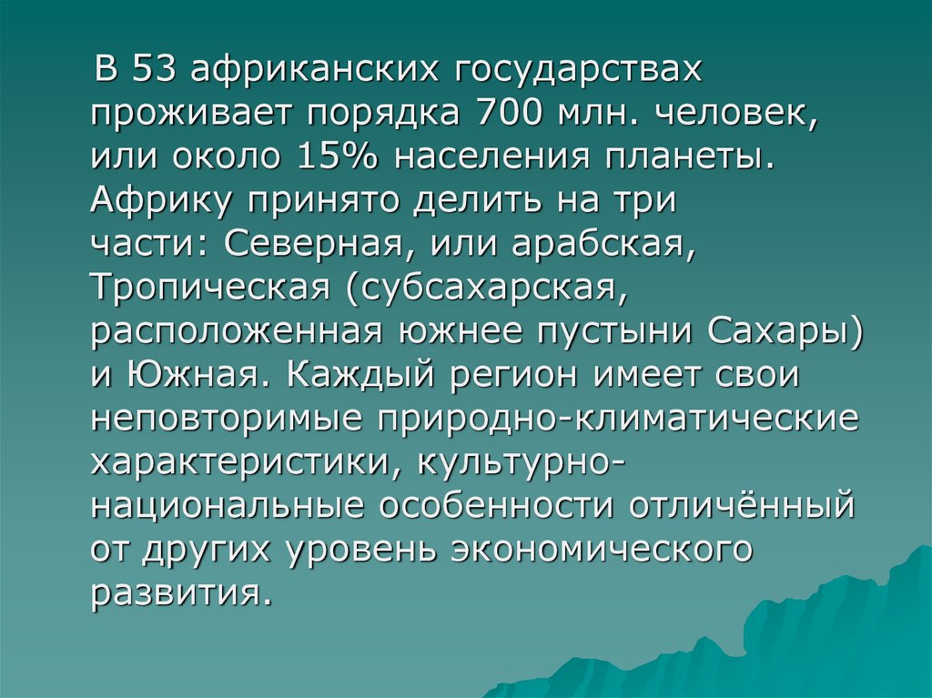 В 53 африканских государствахпроживает порядка 700 млн. человек,