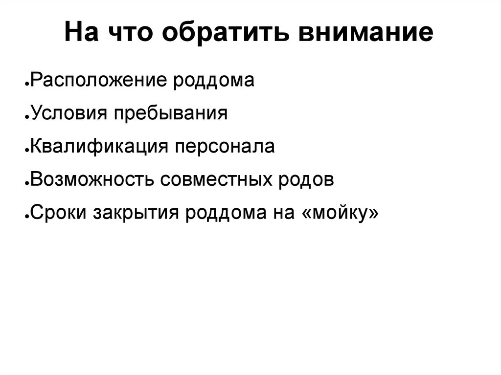 На что обратить вниманиеРасположение роддома