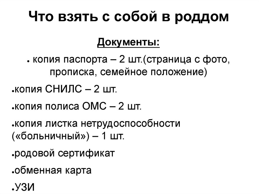 Что взять с собой в роддомДокументы: