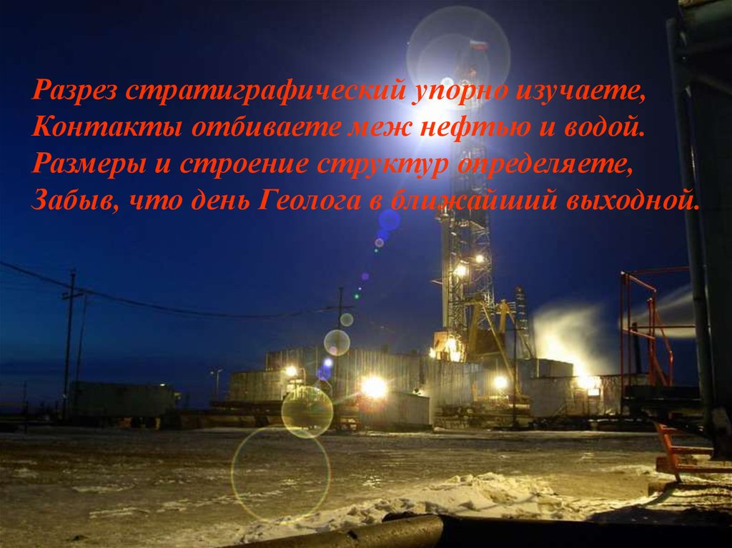 Разрез стратиграфический упорно изучаете,Контакты отбиваете меж нефтью и водой.