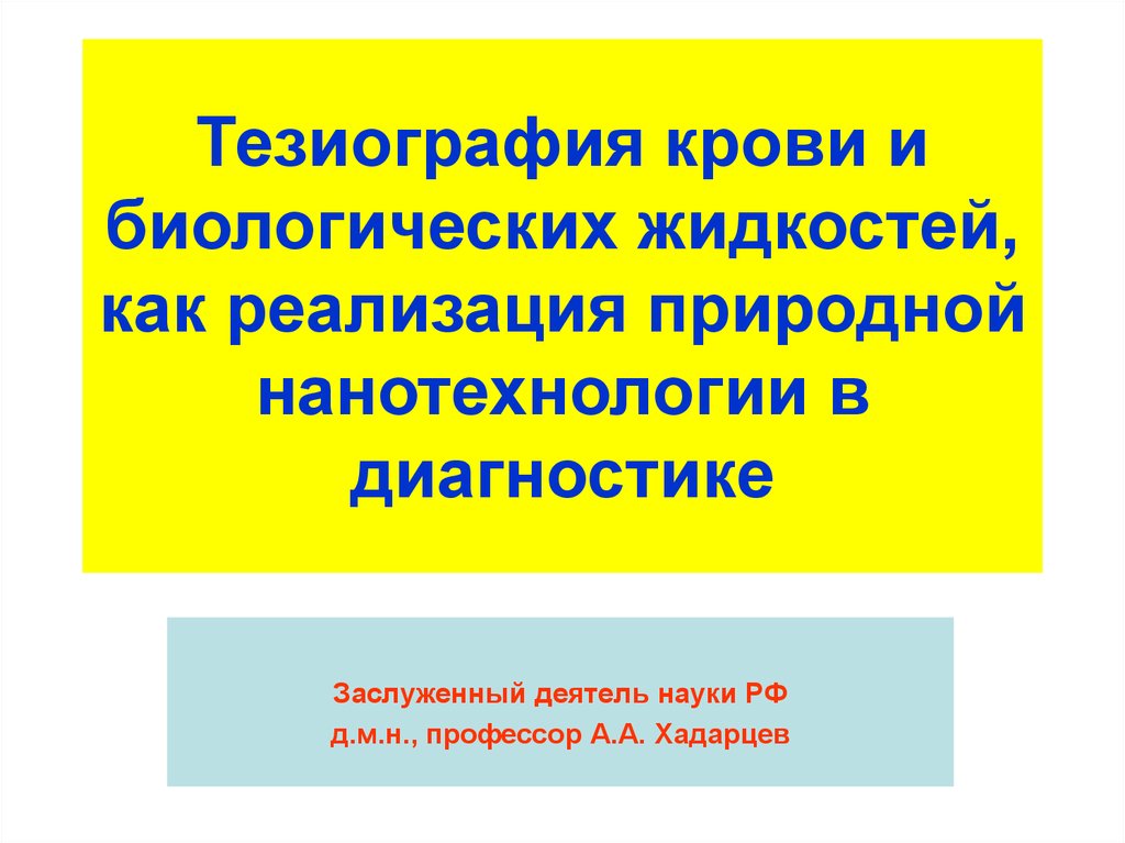 1. Тезиография крови и биологических жидкостей, как реализация природной нанотехнологии в диагностике