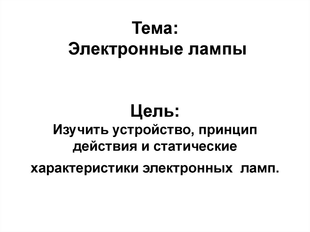 1. Тема: Электронные лампы Цель: Изучить устройство, принцип действия и статические характеристики электронных ламп.