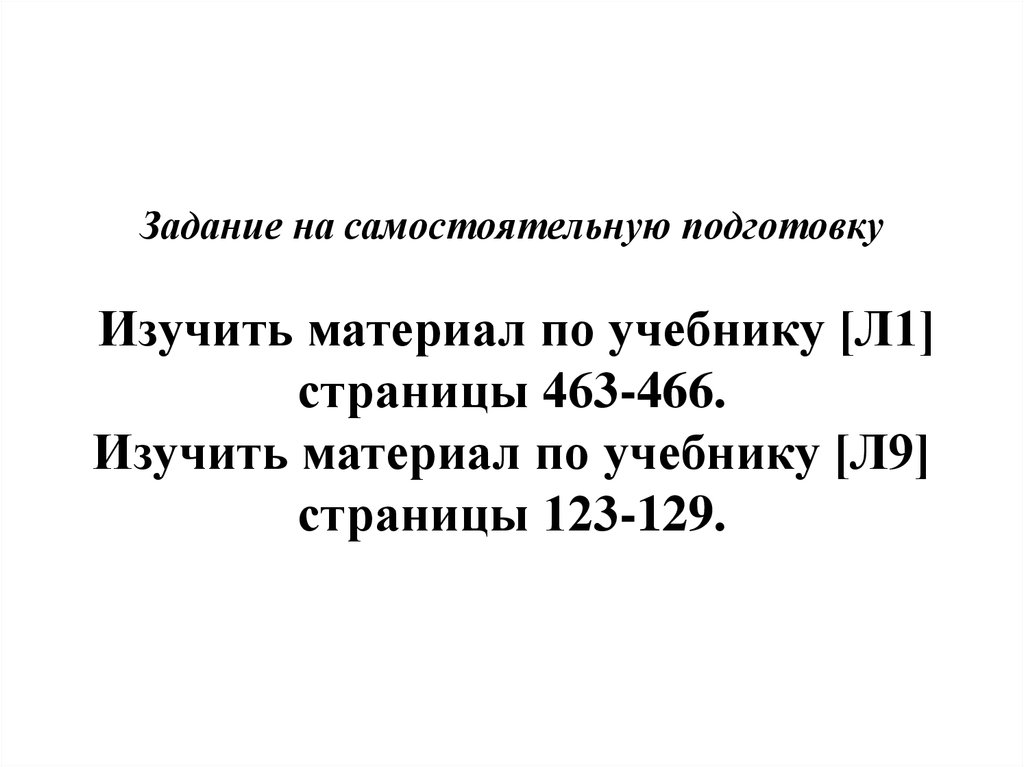 Задание на самостоятельную подготовкуИзучить материал по учебнику [Л1]