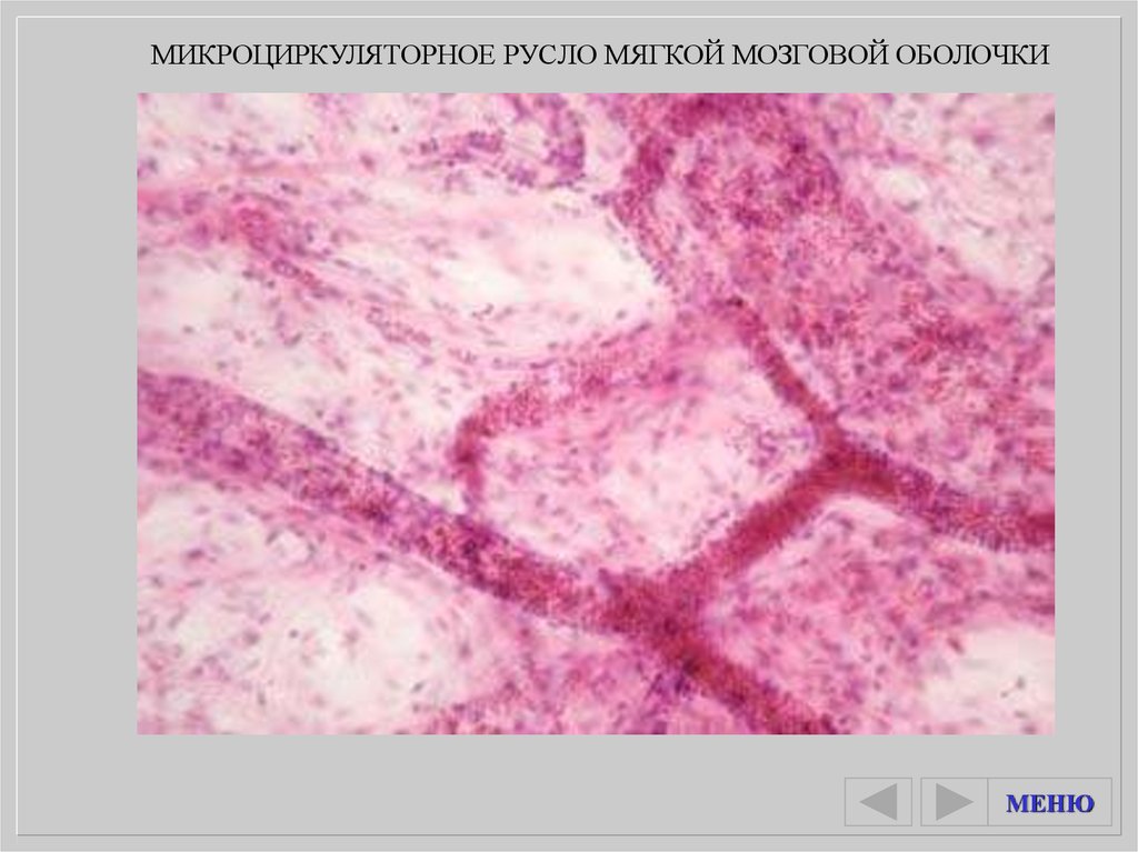МИКРОЦИРКУЛЯТОРНОЕ РУСЛО МЯГКОЙ МОЗГОВОЙ ОБОЛОЧКИМЕНЮ