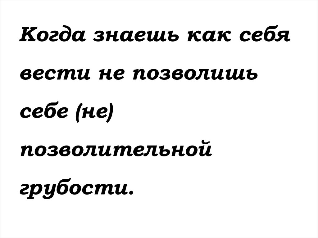 Когда знаешь как себявести не позволишь
