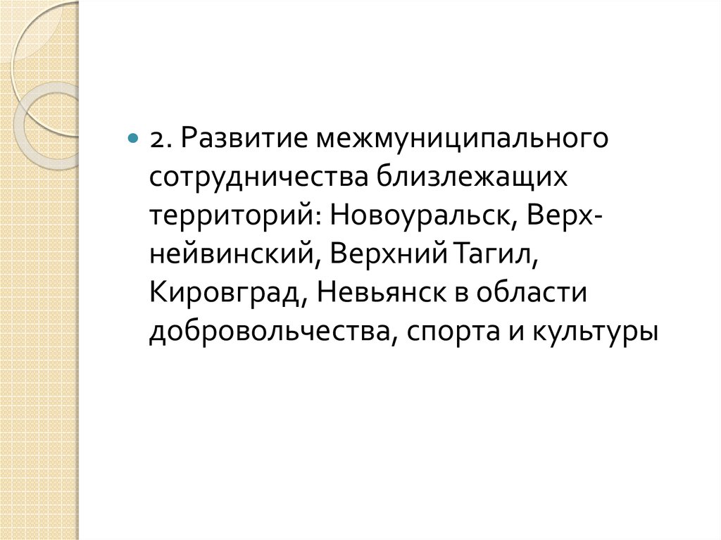 2. Развитие межмуниципальногосотрудничества близлежащих