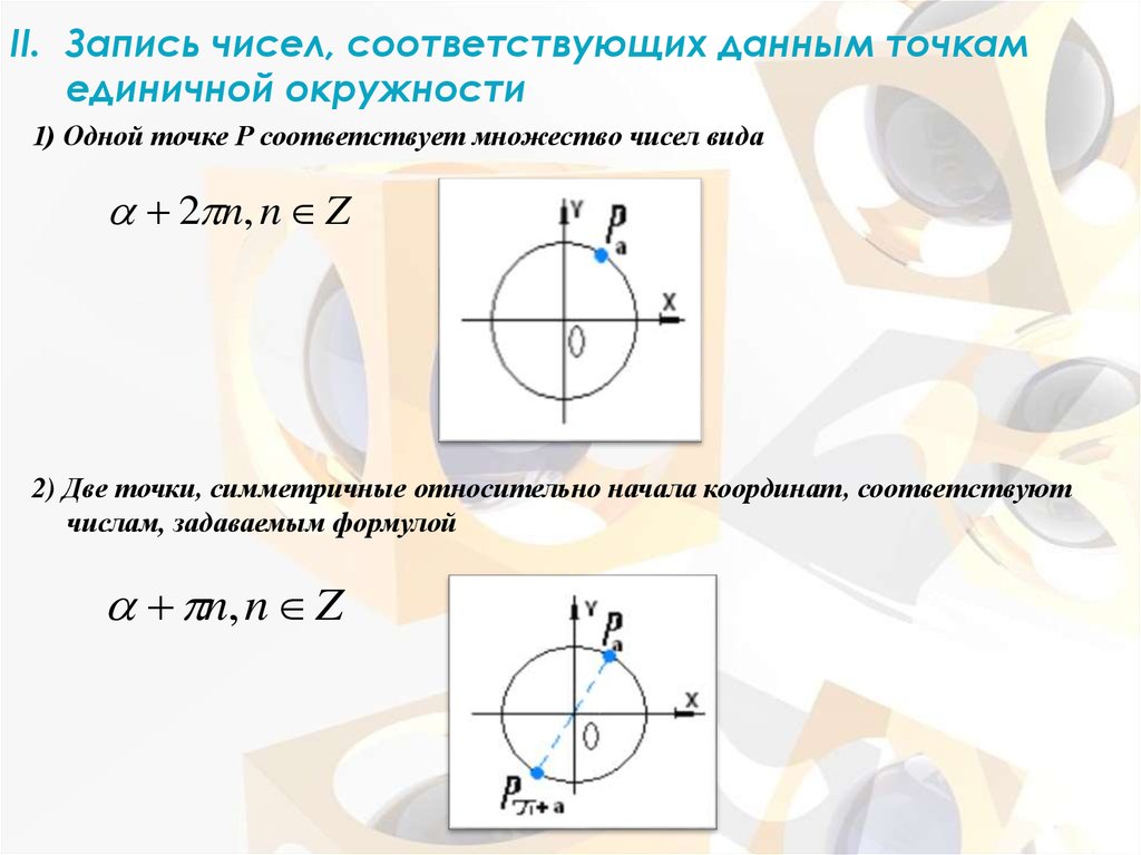 II. Запись чисел, соответствующих данным точкамединичной окружности