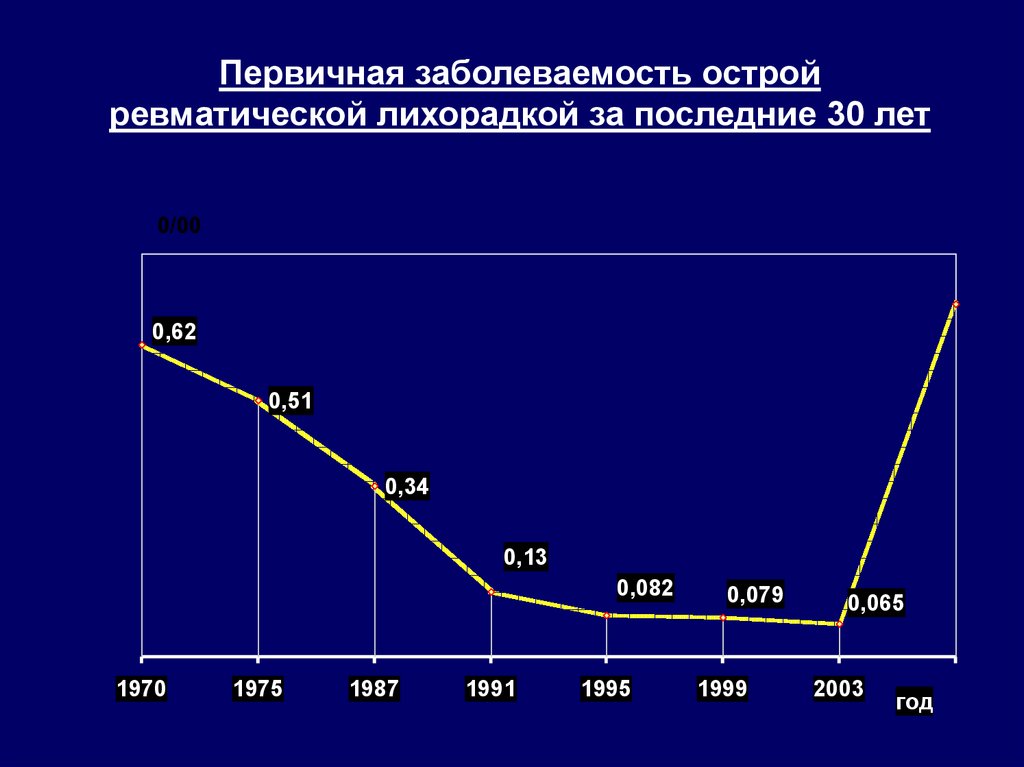 Первичная заболеваемость остройревматической лихорадкой за последние 30 лет