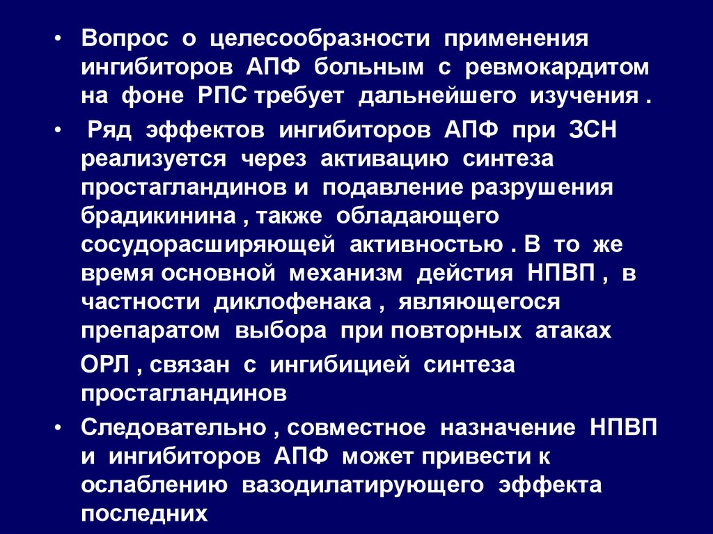 • Вопрос о целесообразности примененияингибиторов АПФ больным с ревмокардитом