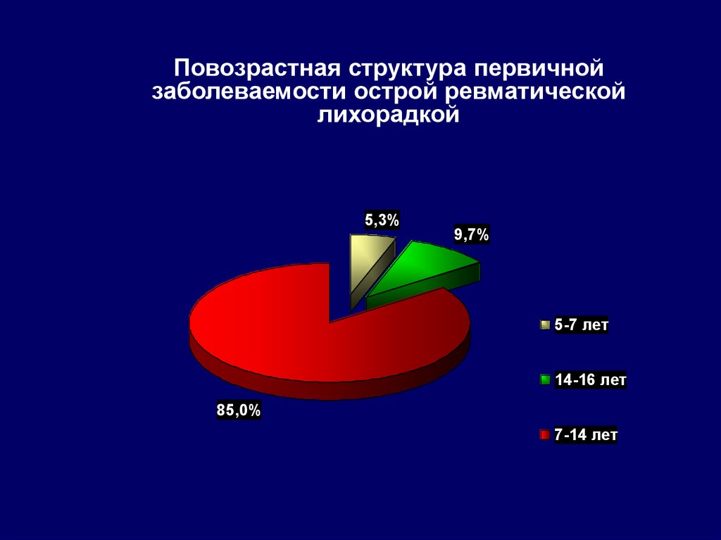Повозрастная структура первичнойзаболеваемости острой ревматической