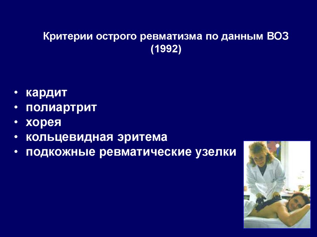 Критерии острого ревматизма по данным ВОЗ(1992)