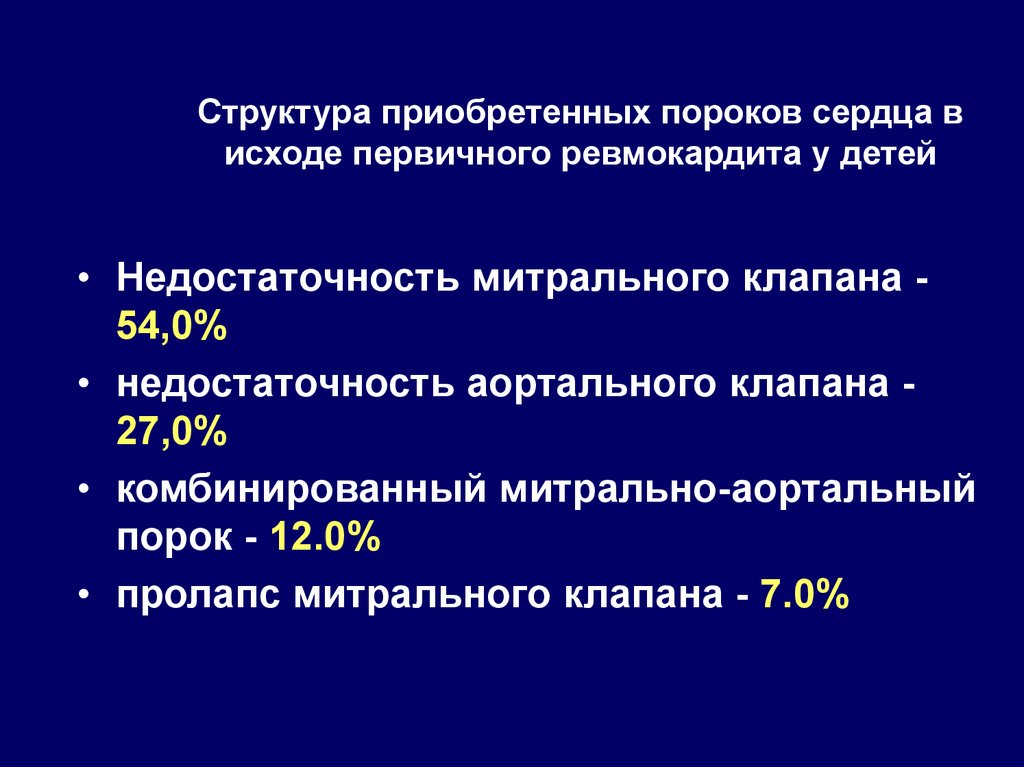Структура приобретенных пороков сердца висходе первичного ревмокардита у детей