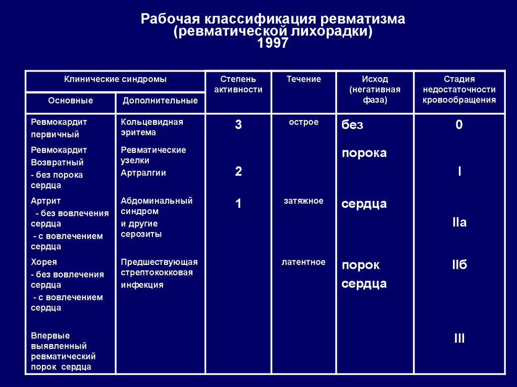 Рабочая классификация ревматизма(ревматической лихорадки)