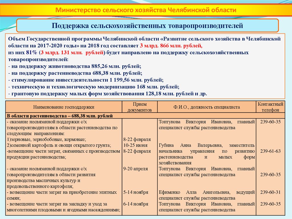 Министерство сельского хозяйства Челябинской областиПоддержка сельскохозяйственных товаропроизводителей