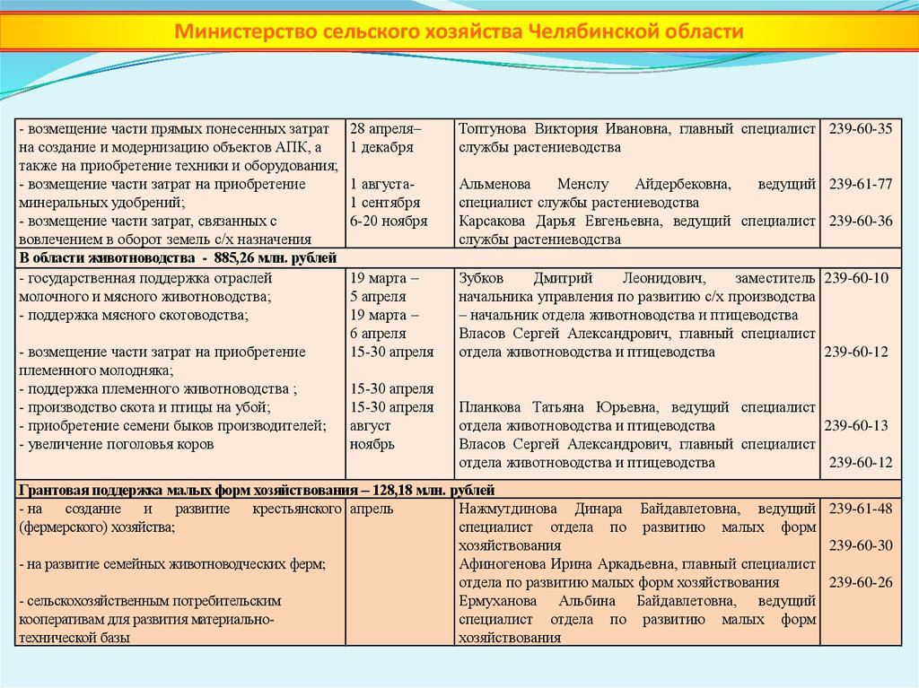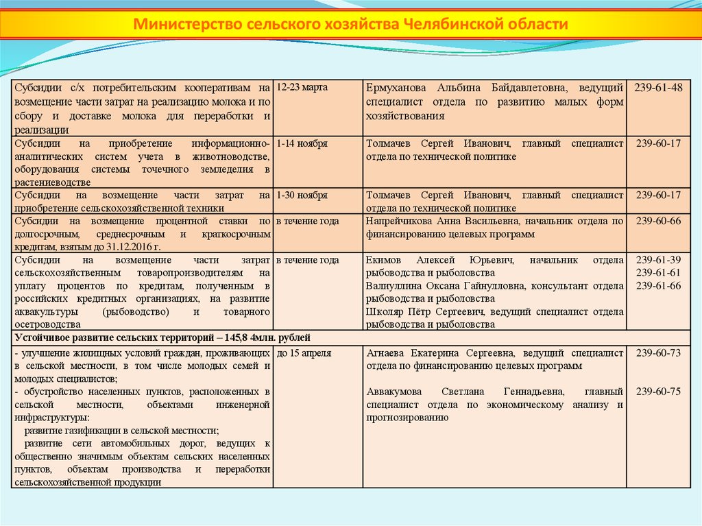 Министерство сельского хозяйства Челябинской областиПоддержка сельскохозяйственных