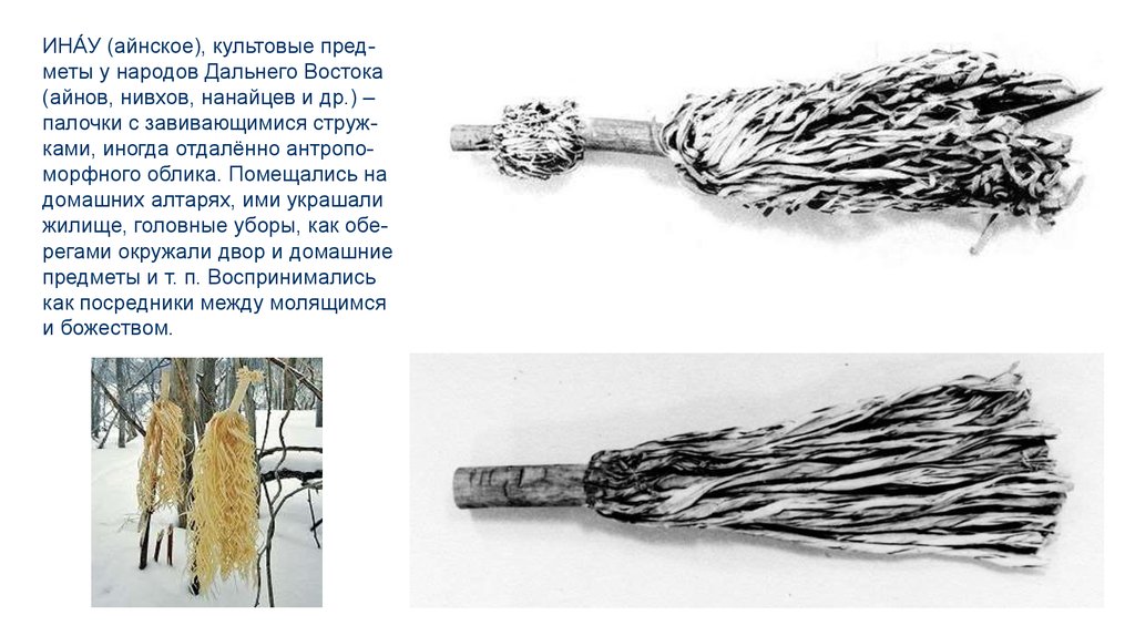 ИНА́У (айнское), культовые предметы у народов Дальнего Востока(айнов, нивхов, нанайцев и др.) –