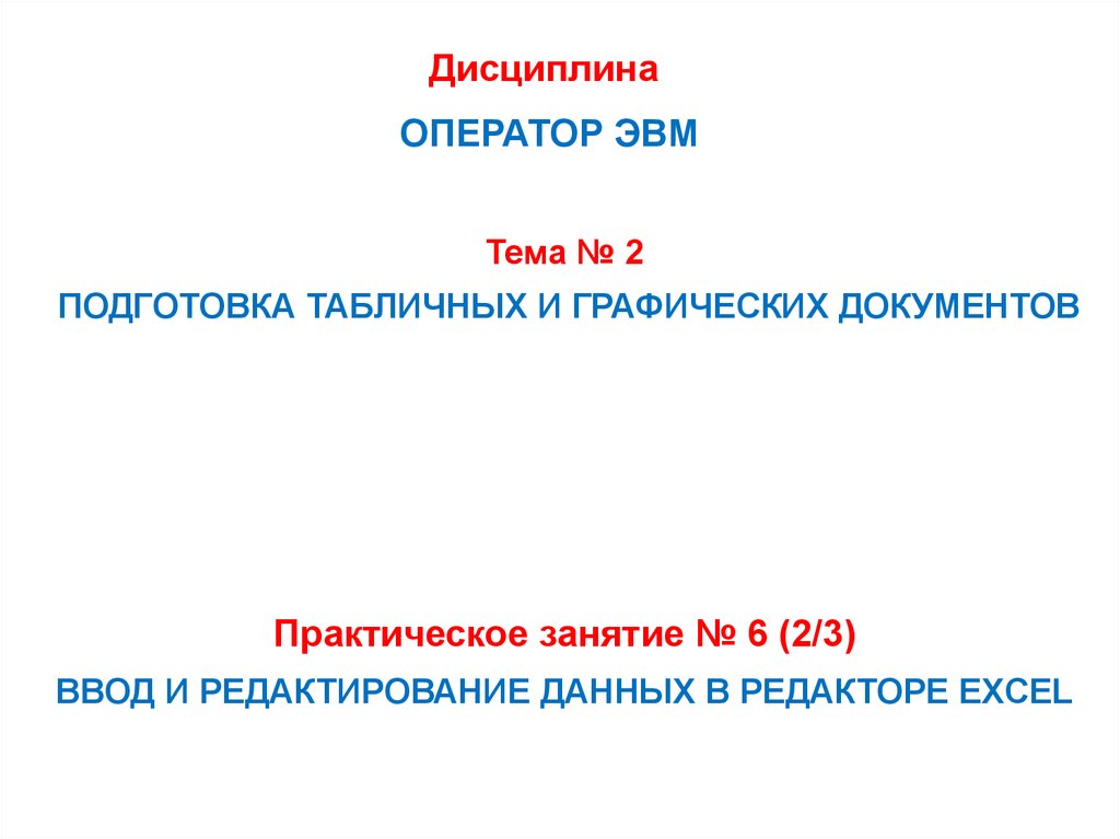 ВВОД И РЕДАКТИРОВАНИЕ ДАННЫХ В РЕДАКТОРЕ EXCEL