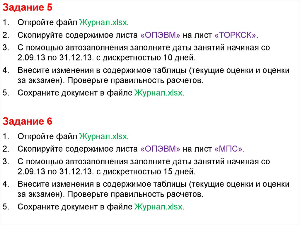 Задание 31. Откройте файл Журнал.xlsx.