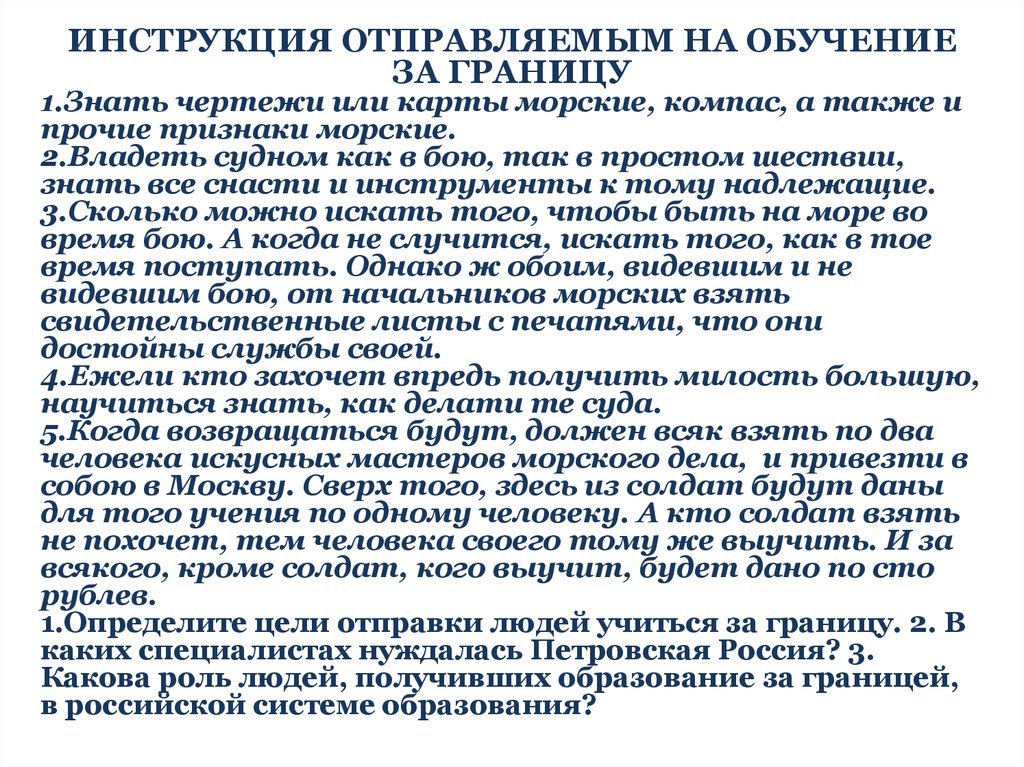 РЕФОРМА ОБРАЗОВАНИЯ:1700 – отправка детей боярских