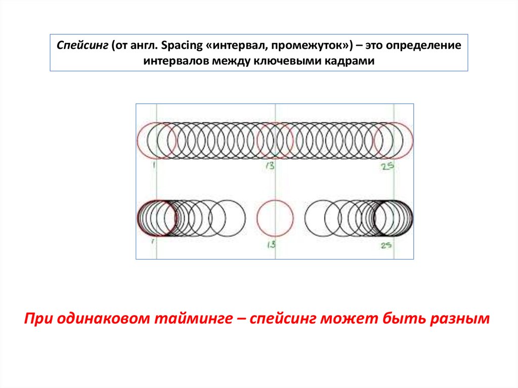 Спейсинг (от англ. Spacing «интервал, промежуток») – это определениеинтервалов между ключевыми кадрами