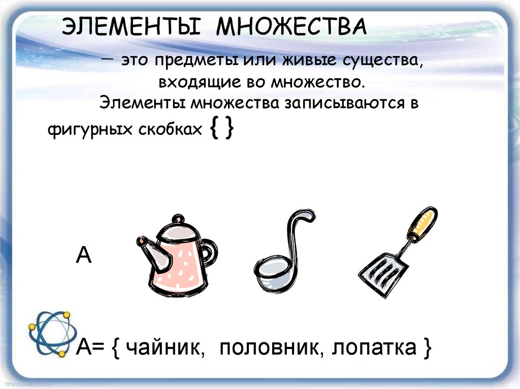 ЭЛЕМЕНТЫ МНОЖЕСТВАэто предметы или живые существа,