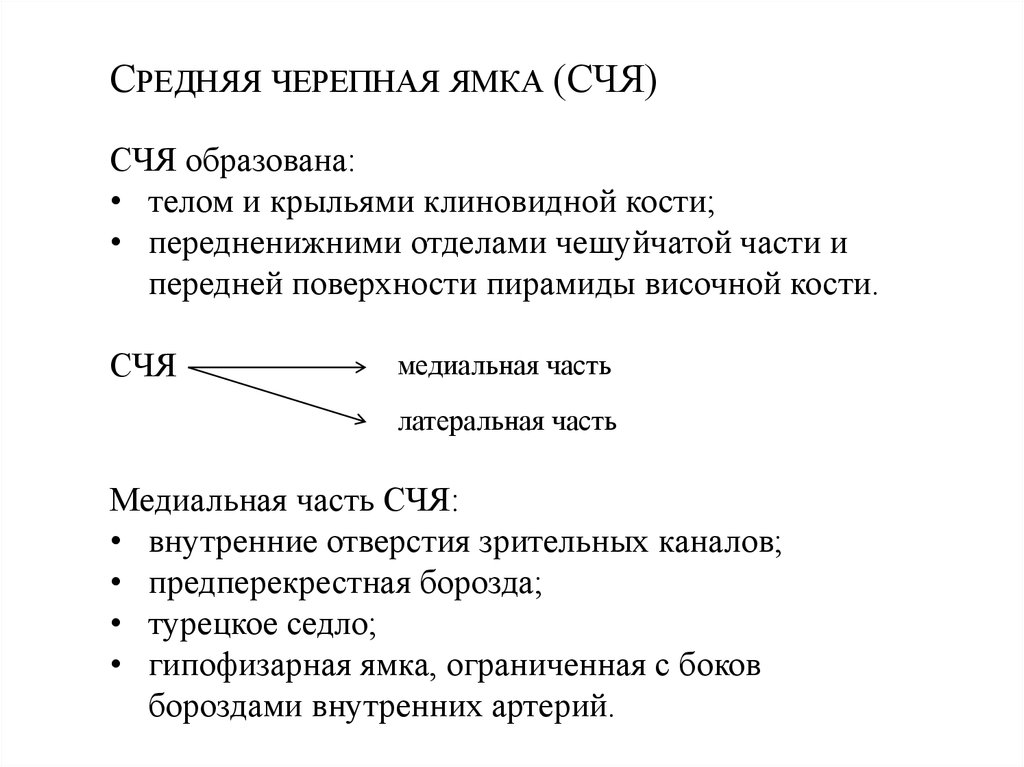 СРЕДНЯЯ ЧЕРЕПНАЯ ЯМКА (СЧЯ)СЧЯ образована: