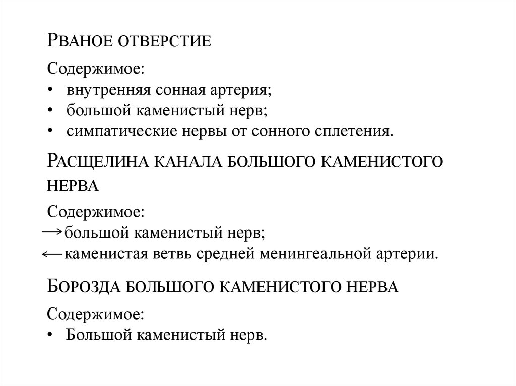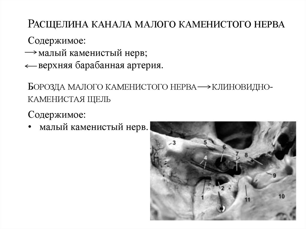 РАСЩЕЛИНА КАНАЛА МАЛОГО КАМЕНИСТОГО НЕРВАСодержимое: