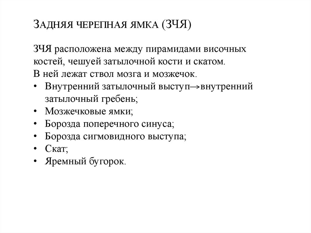 ЗАДНЯЯ ЧЕРЕПНАЯ ЯМКА (ЗЧЯ)ЗЧЯ расположена между пирамидами височных