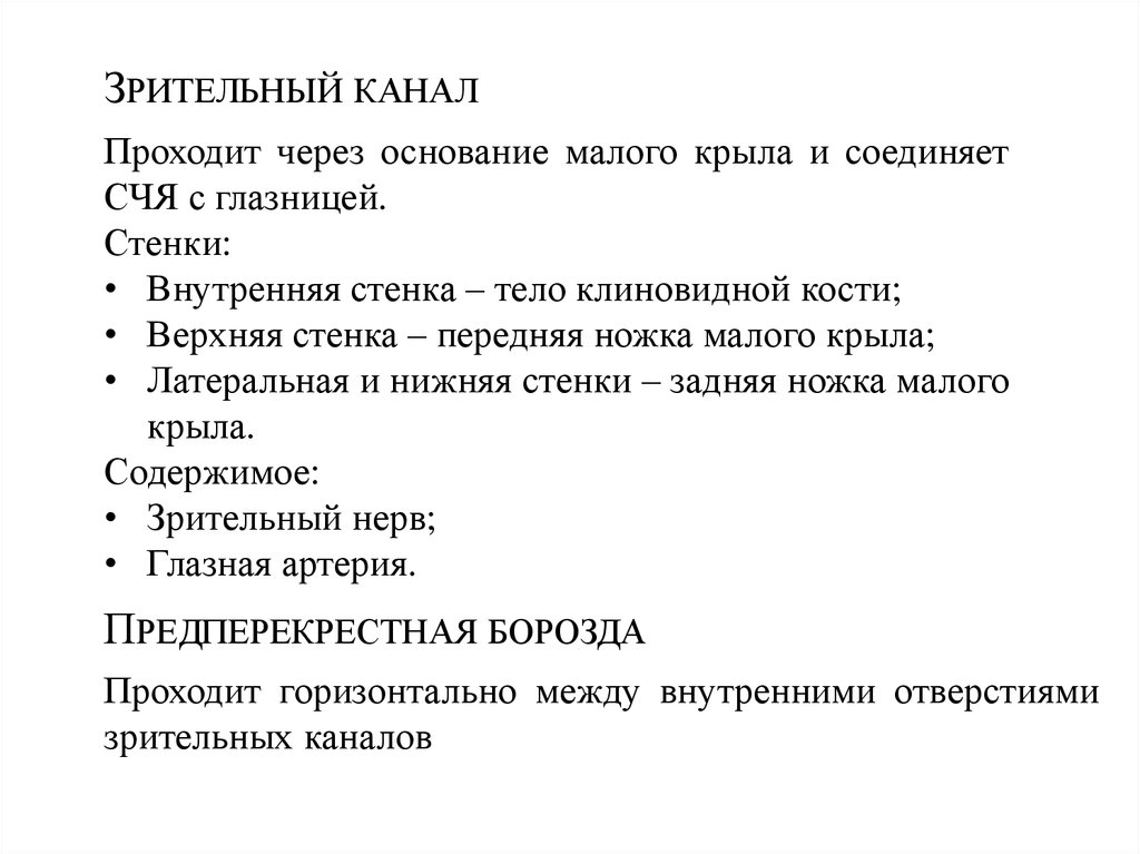 ЗРИТЕЛЬНЫЙ КАНАЛПроходит через основание малого крыла и соединяет