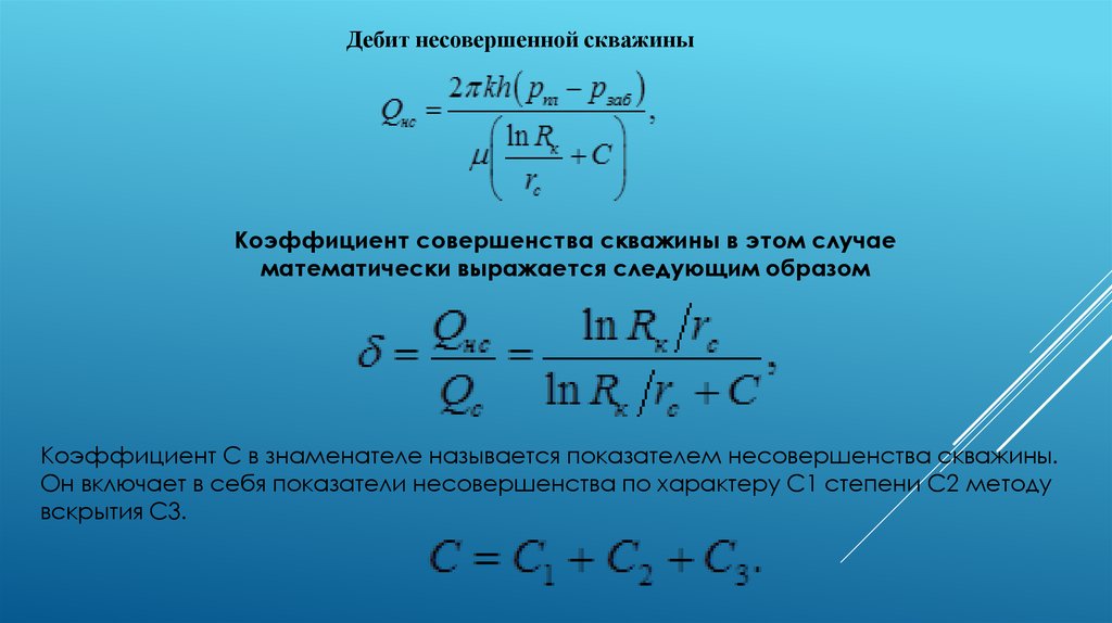 Коэффициент С в знаменателе называется показателем несовершенства скважины.