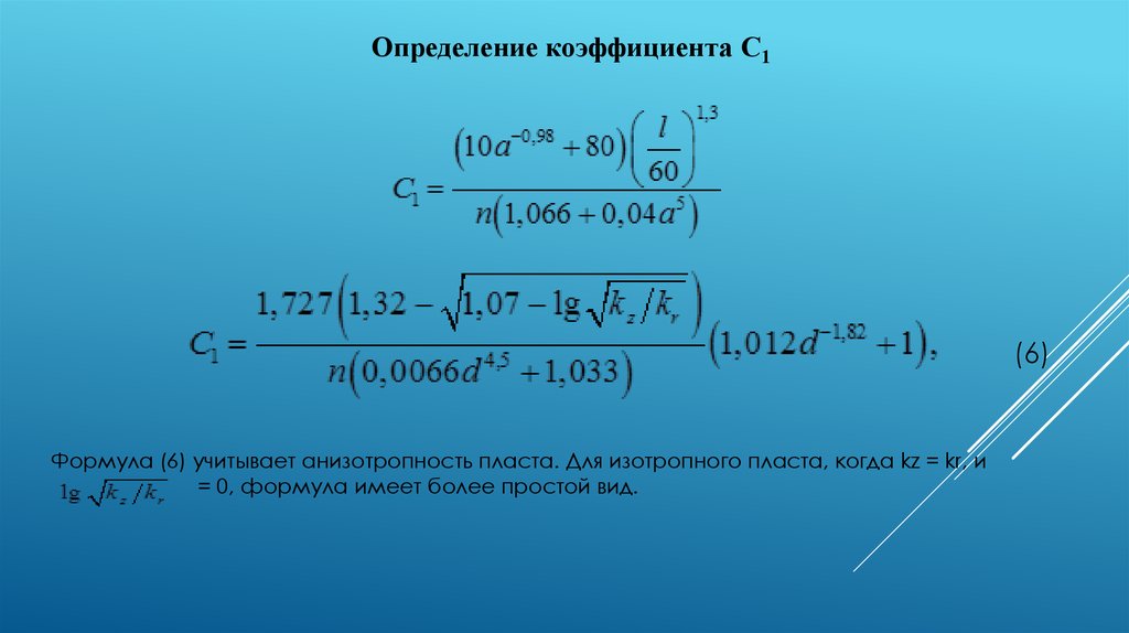 Формула (6) учитывает анизотропность пласта. Для изотропного пласта, когда kz = kr, и