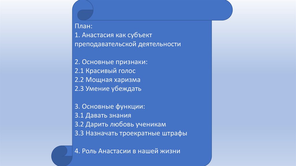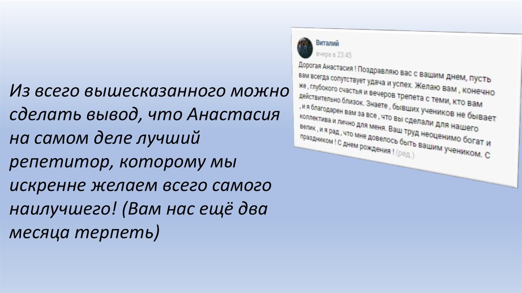 Из всего вышесказанного можносделать вывод, что Анастасия