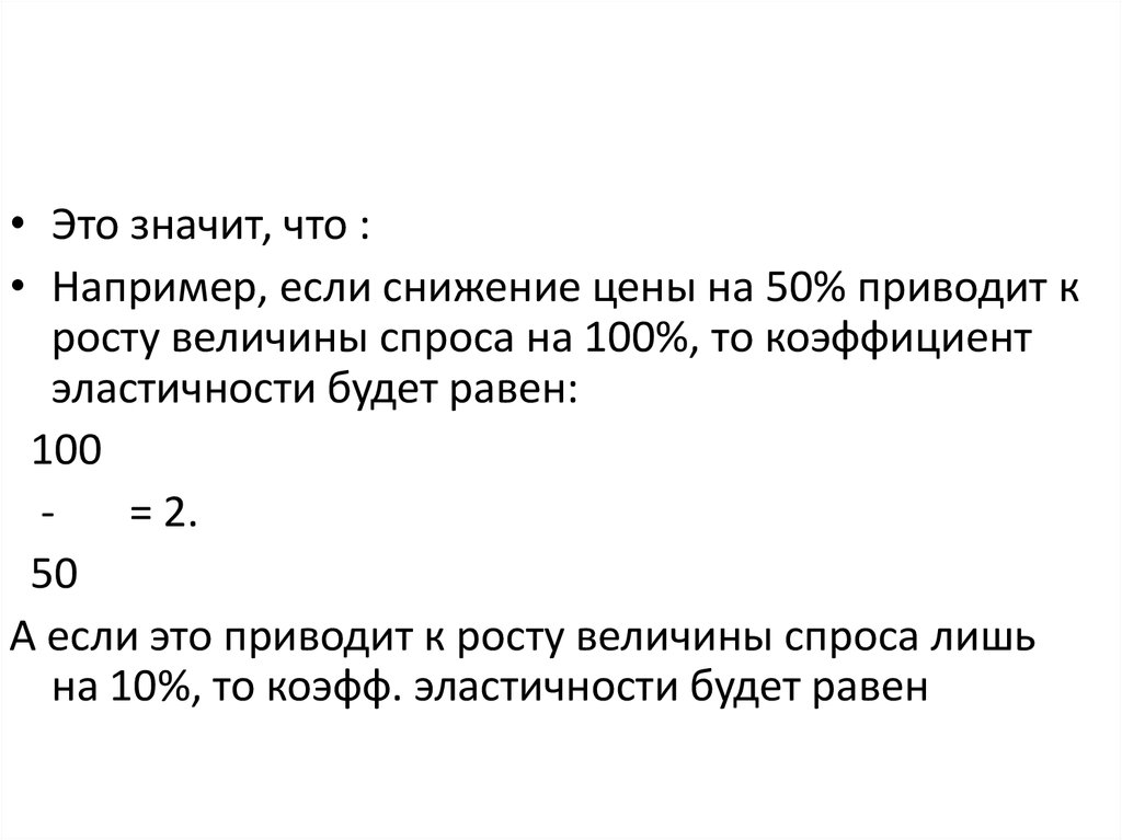 • Это значит, что :• Например, если снижение цены на 50% приводит к