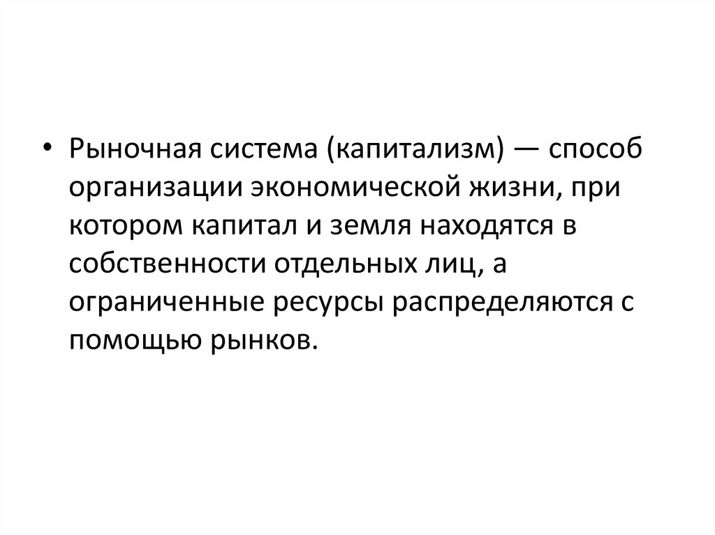 • Рыночная система (капитализм) — способорганизации экономической жизни, при